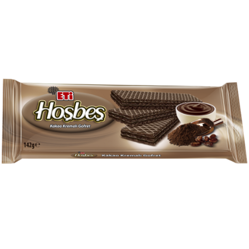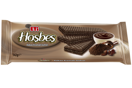 İncecik kakaolu gofret yapraklarının arasında dolu dolu enfes kakao kreması… Kakao tutkunları için dayanılmaz bir lezzet. Ağızda eriyor, lezzetiyle eritiyor. ETİ Hoşbeş, dur durabilirsen!