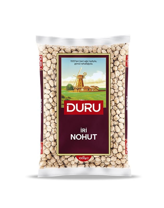 Duru İri Nohut, koçbaşı nohutlara göre daha beyazımsı bir renge sahiptir ve lif, bitkisel protein ve mineral bakımından zengindir. ISO 22000, IFS ve BRC sertifikalarına sahip fabrikalarda özenle seçilip paketlenir. Yemekler, mezeler ve salatalar için ideal bir lezzettir. Kullanım öncesinde 8 saat boyunca ıslatılması önerilir.