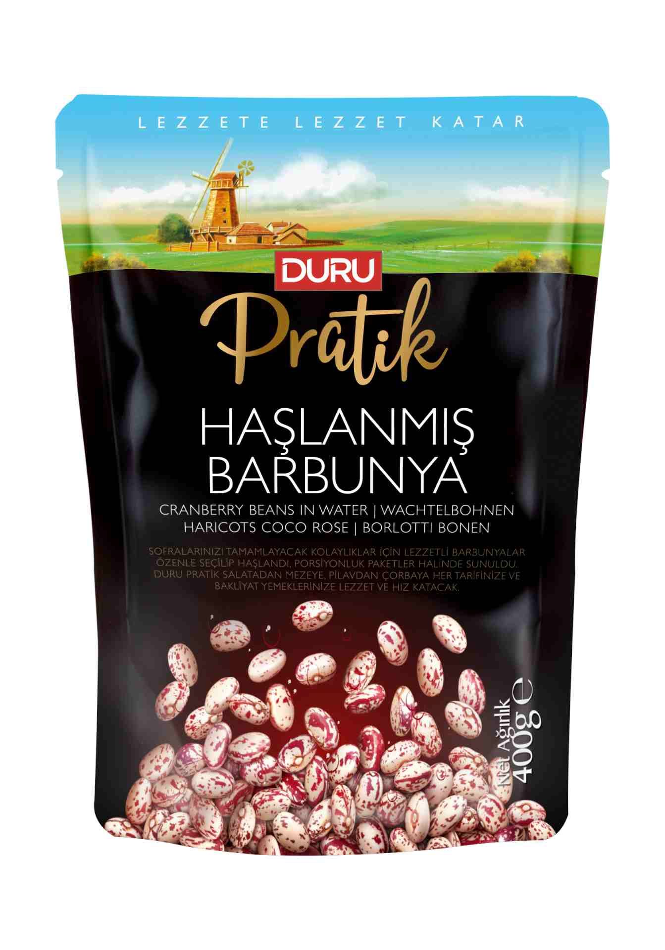 Sofralarınızı tamamlayacak kolaylıklar için en lezzetli barbunyalar özenle seçilip haşlandı. Porsiyonluk paketler halinde sunuldu. Duru Pratik salatadan mezeye, pilavdan çorbaya her tarifinize ve bakliyat yemeklerinize lezzet ve hız katacak.